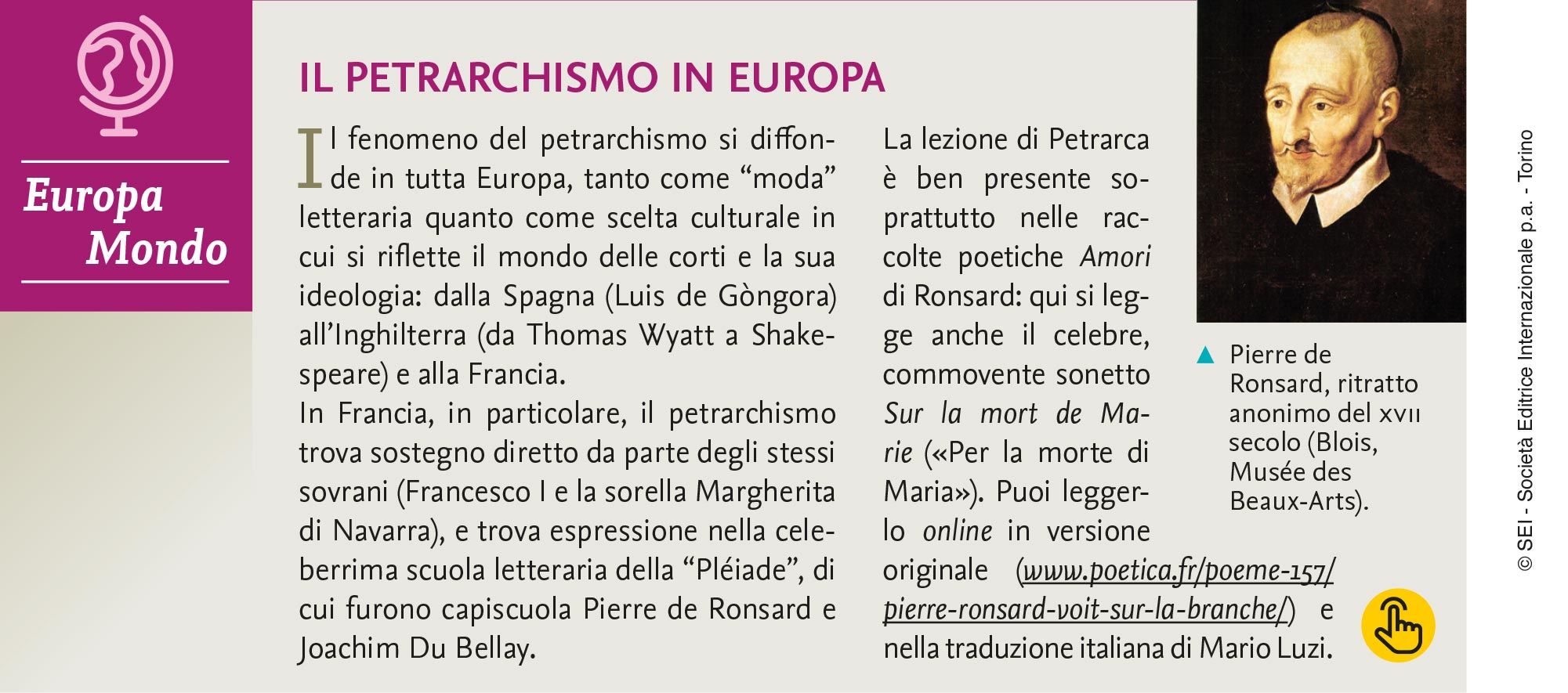 Pierre de Ronsard in un ritratto del 1620 circa. Blois, Musée des Beaux-Arts.