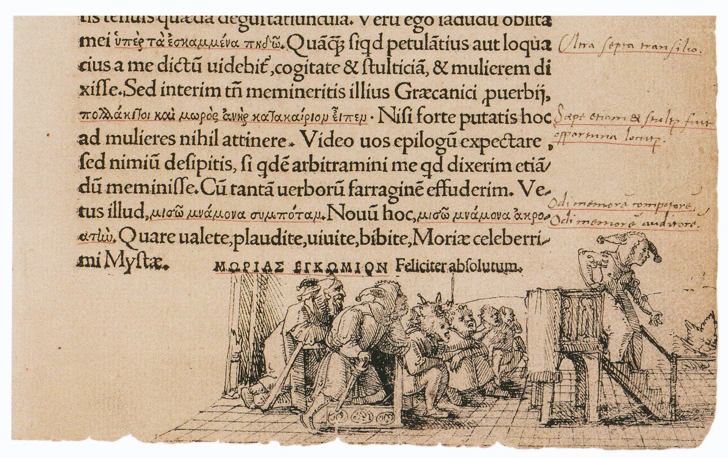 Tra le sue opere, la più famosa è L’elogio della follia in cui Erasmo mette alla berlina, con impareggiabile ironia, la meschinità, i vizi e i difetti della società del tempo.