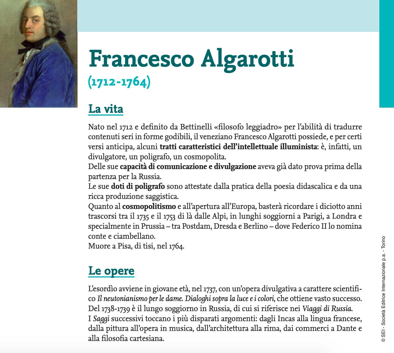 Assai numerose sono le relazioni e le pubblicazioni lasciate dai viaggiatori italiani nel corso del diciottesimo secolo. Il precursore del reportage giornalistico può essere individuato nel poligrafo veneziano Francesco Algarotti, nei cui Viaggi di Russia (1739) le puntuali notazioni paesaggistiche si mescolano, in una prosa colorita, con le informazioni sul quadro politico e culturale.