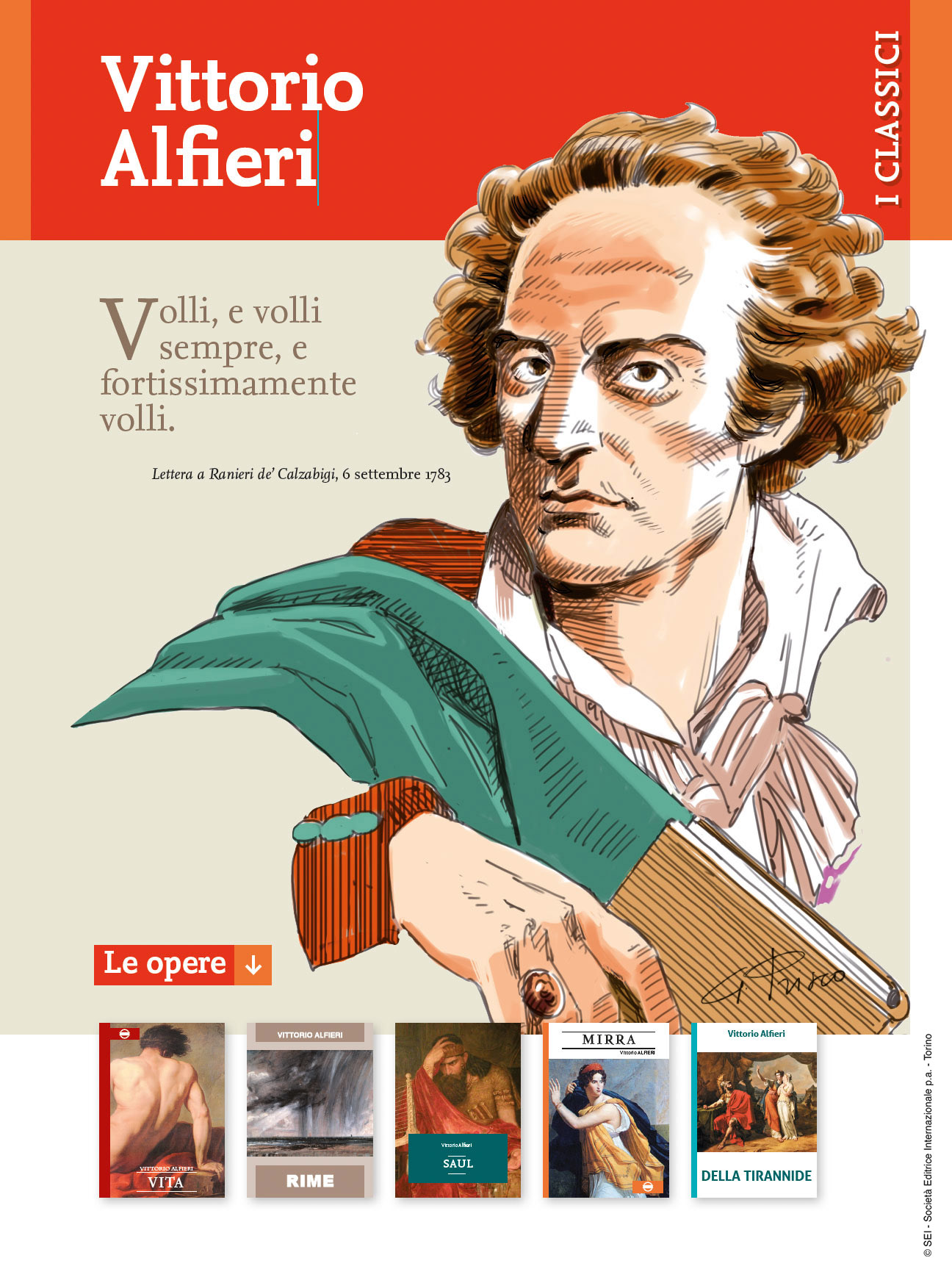 Di argomento storico, mitologico o biblico, tutte le tragedie alfieriane concentrano l’azione attorno a uno o due personaggi centrali, che generalmente svolgono il ruolo dell’eroe e quello del tiranno. È il caso di Filippo, che incarna la figura storica del re di Spagna Filippo II, e che rappresenta le caratteristiche della tirannide; Polinice, che incarna l’ambizione smisurata per il potere; Antigone, la giovane che disobbedisce al re Creonte per seppellire il fratello Polinice e va incontro alla morte; Agamennone, il comandante della spedizione greca contro Troia, ucciso dalla moglie (e dall’amante di lei) che si vendica perché lui aveva sacrificato la figlia (per partire con le navi dalla Grecia); Oreste, il figlio di Agamennone che vendica il padre, compiendo il matricidio e molti altri. All’interno di questa galleria di tiranni e di eroi che lottano in nome della liberta, alcune figure si caratterizzano per una straordinaria modernità in quanto il conflitto tragico non si realizza contro un nemico esterno, ma nella loro interiorità: sono Saul e Mirra.