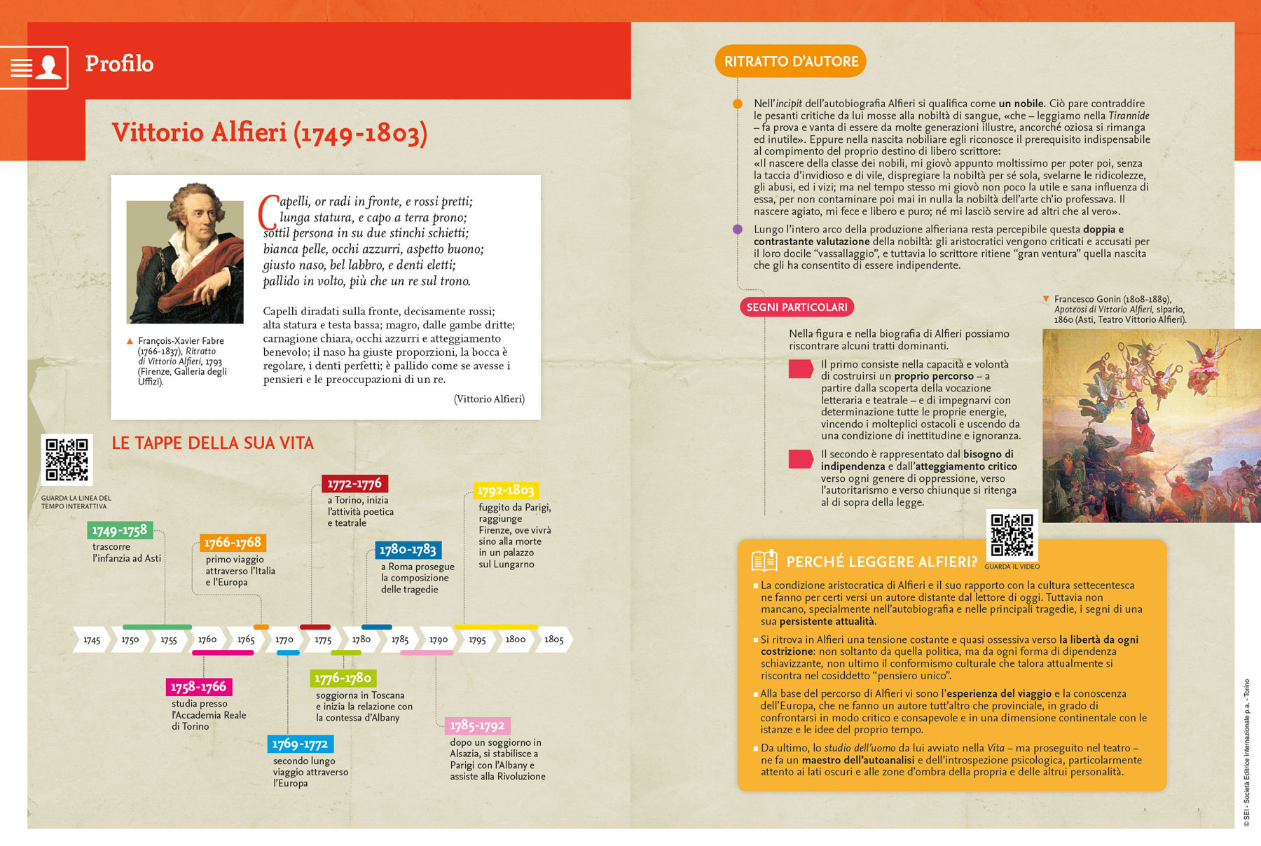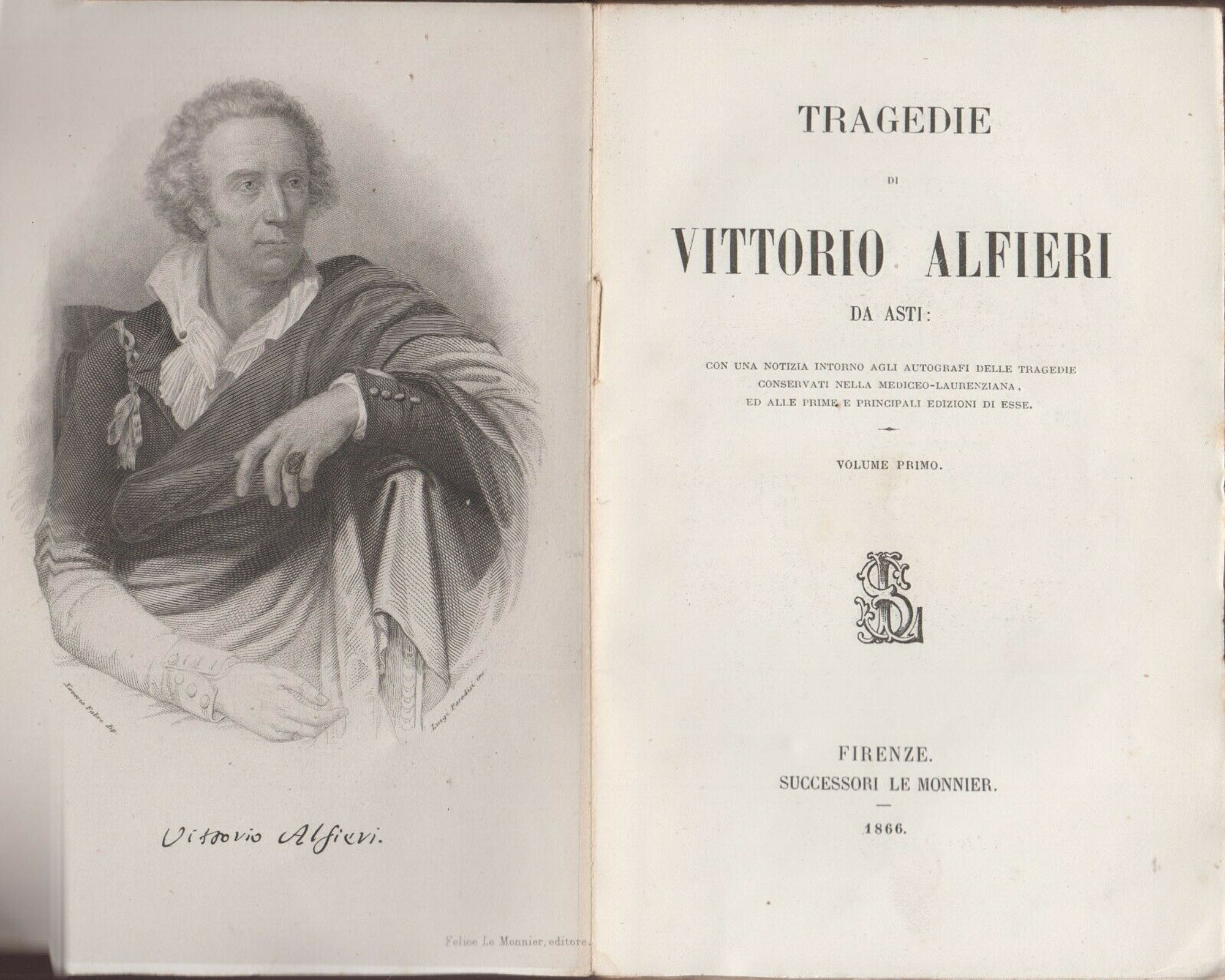 Tragedie greche: Polinice (1775), Agamennone (1766-1777), Antigone (1776), Oreste (1777). Tragedie “della libertà”: Filippo (1775), La congiura de’ Pazzi (1777-1778), Virginia (1777), Timoleone (1779-1780), Agide (1784-1786), Bruto primo e Bruto secondo (1786-1788).