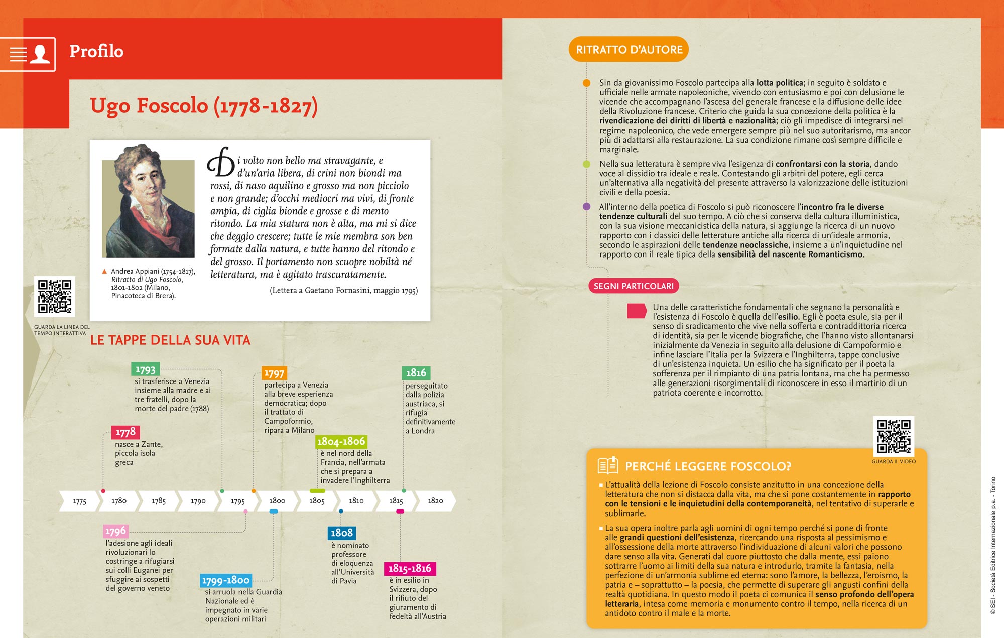 Pubblicate in edizione definitiva nel 1803, le poesie della maturità di Foscolo comprendono due odi e undici sonetti. Alle odi A Luigia Pallavicini caduta da cavallo e All’amica risanata, tese a celebrare la bellezza e la funzione eternatrice della poesia, seguono i sonetti, entro i quali trovano spazio temi consueti nella produzione foscoliana, quali l’esilio, la morte, l’iniquità dei tempi, il richiamo alla terra materna e il valore della parola poetica.