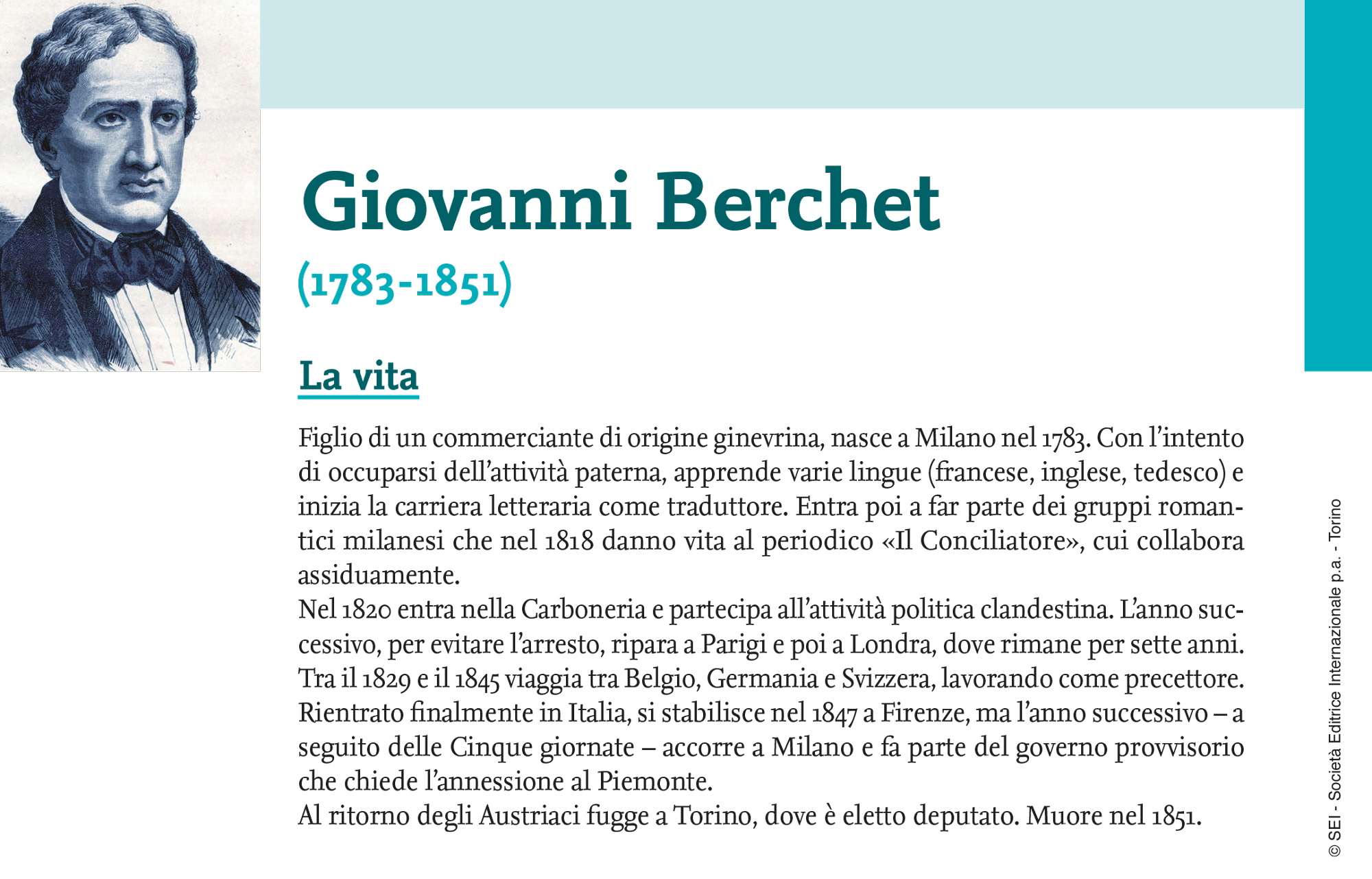 Nella Lettera semiseria di Grisostomo, Berchet (sotto lo pseudonimo di Grisostomo, che in greco significa “bocca d’oro”) finge di indirizzare al figlio due ballate del Bürger – Eleonora e Il cacciatore feroce – tratte da leggende popolari germaniche. Il suo discorso assume un tono ironico e scherzoso, in quanto pare consigliare il rispetto della tradizione classicista di cui mette invece in ridicolo l’inattualità. La conclusione è che occorre «spaziare generosamente e grandiosamente per la immensità del cuore umano»: in questa prospettiva i “veri classici” sono i romantici, che traggono ispirazione dal presente e si rivolgono al popolo con un intento educativo.