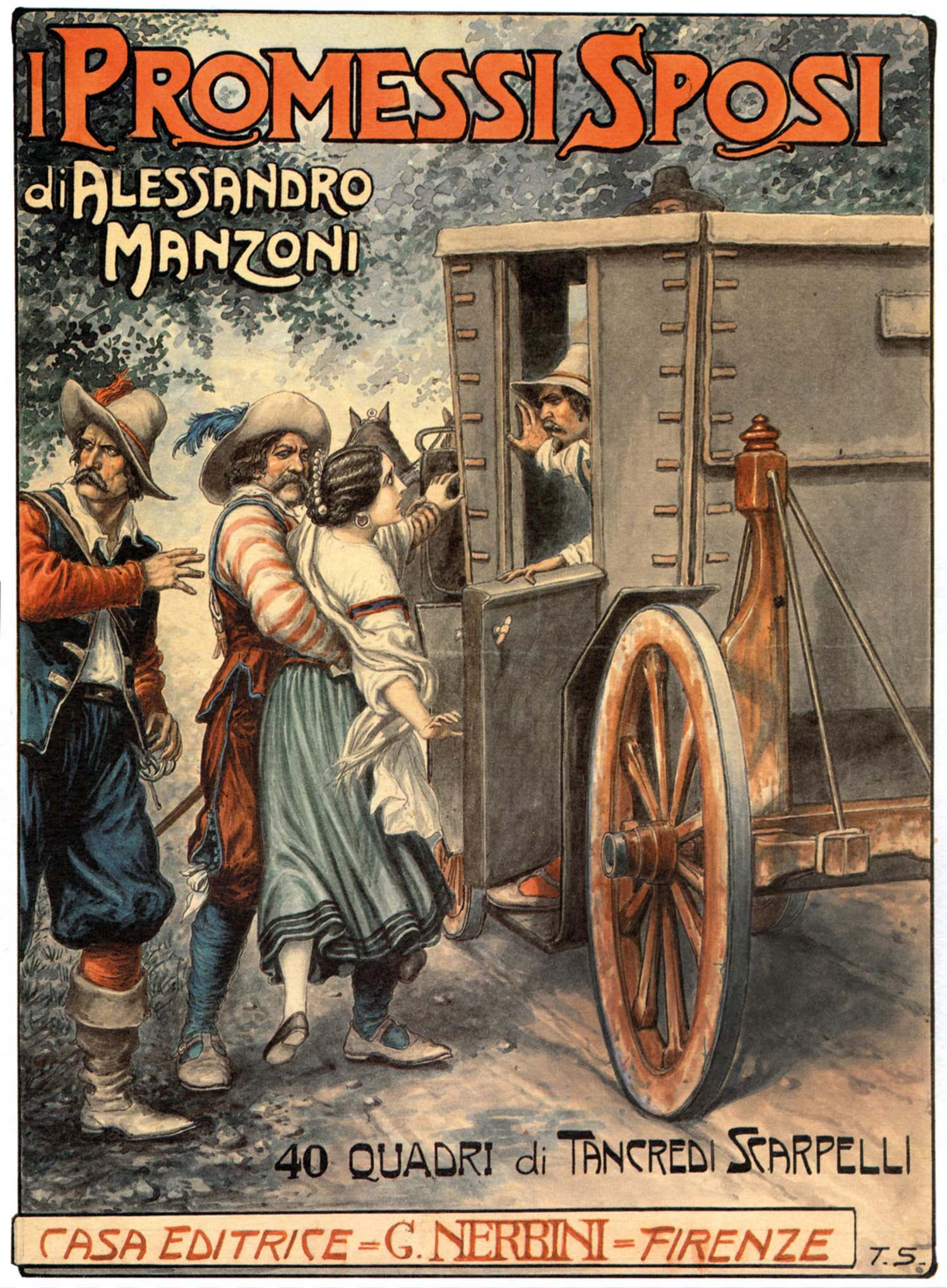 L’opera è suddivisa in 38 capitoli, preceduti da un’introduzione; narra la tormentata vicenda di due umili giovani, Renzo e Lucia, il cui progetto di matrimonio viene impedito dalla prepotenza di un signorotto locale, don Rodrigo. Dopo molte peripezie, i due promessi sposi si ricongiungono e possono finalmente celebrare le nozze. Vera protagonista del romanzo è, tuttavia, la corrotta e violenta società lombarda del Seicento, sottomessa alla dominazione spagnola. Il romanzo, iniziato nel 1821, è pubblicato in edizione definitiva nel biennio 1840-1842.