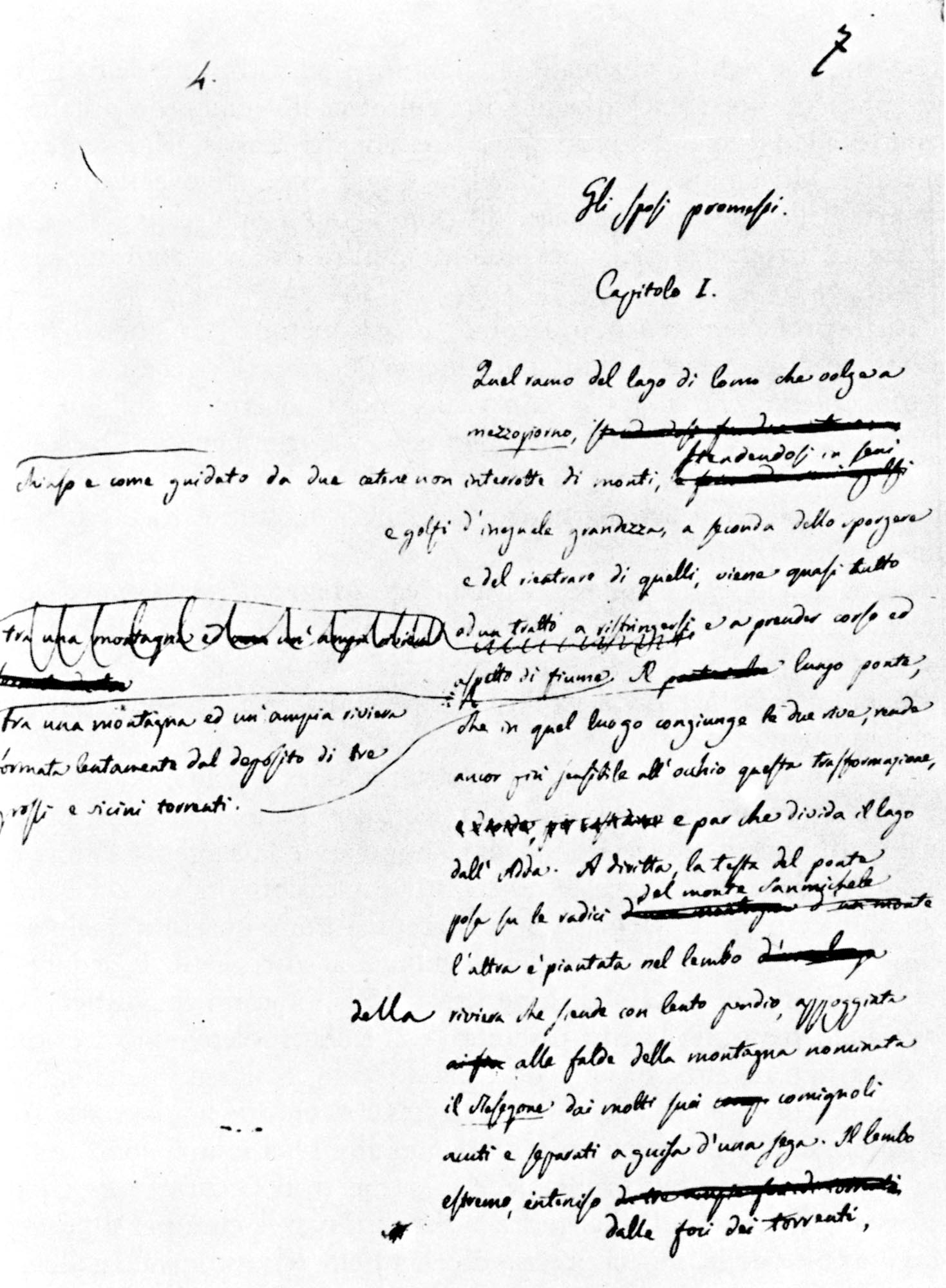 Manzoni ci ha lasciato tre stesure del suo romanzo. La prima (1821-1823), mai pubblicata dall’autore, si intitola Fermo e Lucia. Manzoni non ne fu soddisfatto, per ragioni strutturali e per ragioni linguistiche: dal punto di vista strutturale, la narrazione risultava organizzata in blocchi narrativi troppo separati fra di loro, con un’eccessiva sproporzione fra la trama principale e le digressioni (in particolare, quelle sulle vicende della monaca di Monza e dell’Innominato, due veri e propri “romanzi nel romanzo”); dal punto di vista linguistico, Manzoni è scontento di un linguaggio troppo influenzato dal francese e dal dialetto lombardo, lontano dunque dall’uso comune della lingua contemporanea. Subito dopo, grazie ai consigli di prestigiosi intellettuali che avevano letto il manoscritto, riprende a lavorarci per quattro anni. Il romanzo esce in tre tomi presso l’editore milanese Ferrario nel 1827 con il titolo definitivo I promessi sposi e ottiene un immediato successo, non solo in Italia: viene infatti tradotto nelle principali lingue europee (tedesco, inglese, francese e spagnolo), suscitando tra l’altro l’interesse di Goethe in Germania e di Edgar Allan Poe negli Stati Uniti. Nonostante il successo, Manzoni è ancora insoddisfatto della sua opera, principalmente dal punto di vista espressivo: non era riuscito a creare una lingua unificatrice per l’Italia, che si avviava sulla strada dell’unità politica. Manzoni decide allora di trasferirsi insieme alla famiglia per alcuni mesi a Firenze, per «sciacquare i panni in Arno», cioè per adeguare la lingua del romanzo all’italiano parlato (quindi più vicino alla lingua viva) dai fiorentini di cultura. Il romanzo assume dunque la forma considerata definitiva da Manzoni, e che ancora oggi leggiamo, uscendo a dispense tra 1840-1842.