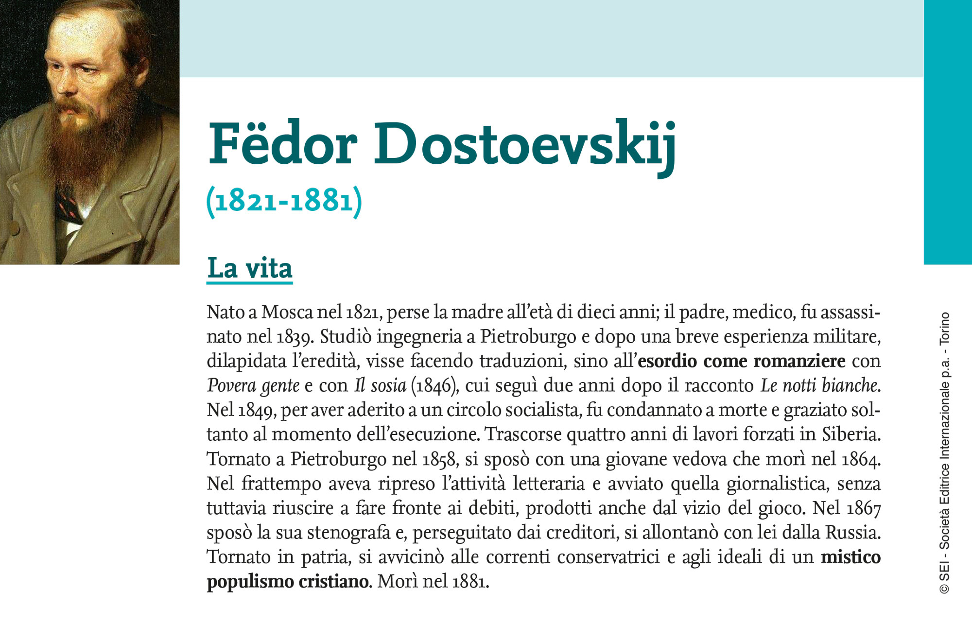La vita di Fëdor Michajlovič Dostoevskij, fu percorsa da avvenimenti traumatici (l’assassinio di cui è vittima suo padre, la propria condanna a morte, una lunga detenzione), che condizionarono l’opera dello scrittore sin dal romanzo d’esordio – Povera gente, drammatica rappresentazione delle misere condizioni in cui viveva il proletariato urbano – e da quello successivo, Il sosia, che riprendeva il tema romantico dello sdoppiamento della personalità.