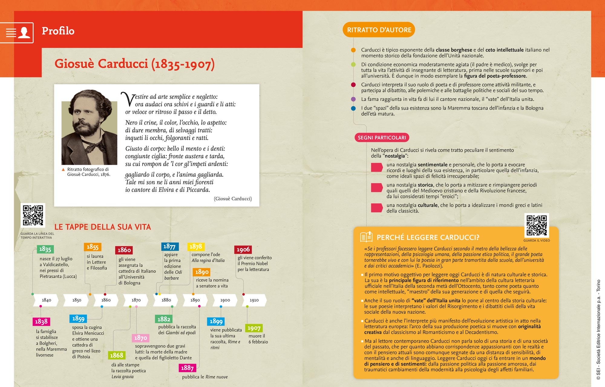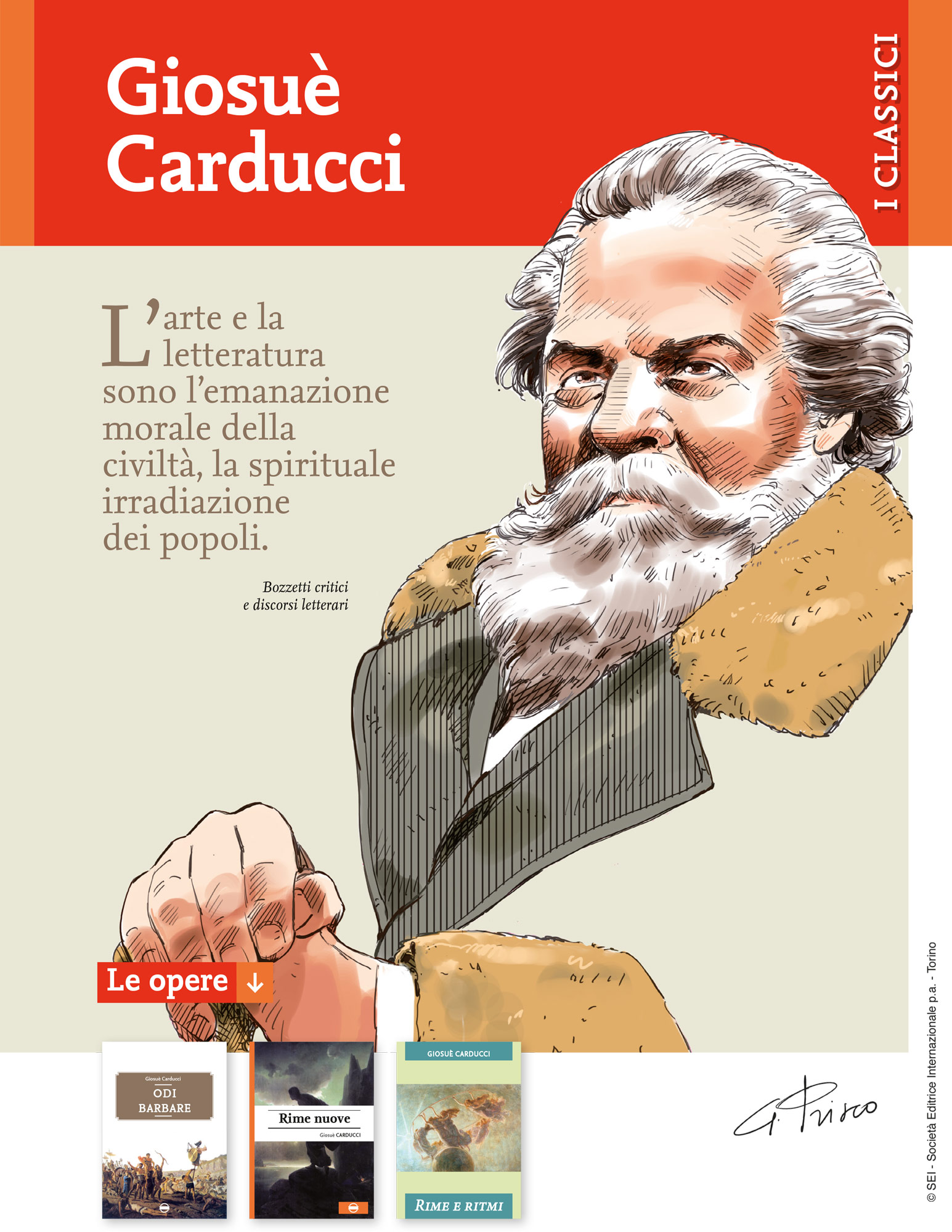Cinquantadue poesie composte tra il 1873 e il 1889 e pubblicate in diverse edizioni dal 1877 al 1893. Le Odi barbare prendono il titolo dalla sperimentazione metrica adottata da Carducci nella composizione delle poesie. La raccolta condivide molti elementi di fondo con le Rime nuove, composte negli stessi anni: dalle memorie storiche ai ricordi personali, dal rifiuto del presente al vagheggiamento di classiche bellezze. Qui, tra le altre, leggiamo le poesie Dinanzi alle terme di Caracalla, Nella piazza di San Petronio, A Giuseppe Garibaldi, Alla stazione in una mattina d’autunno.