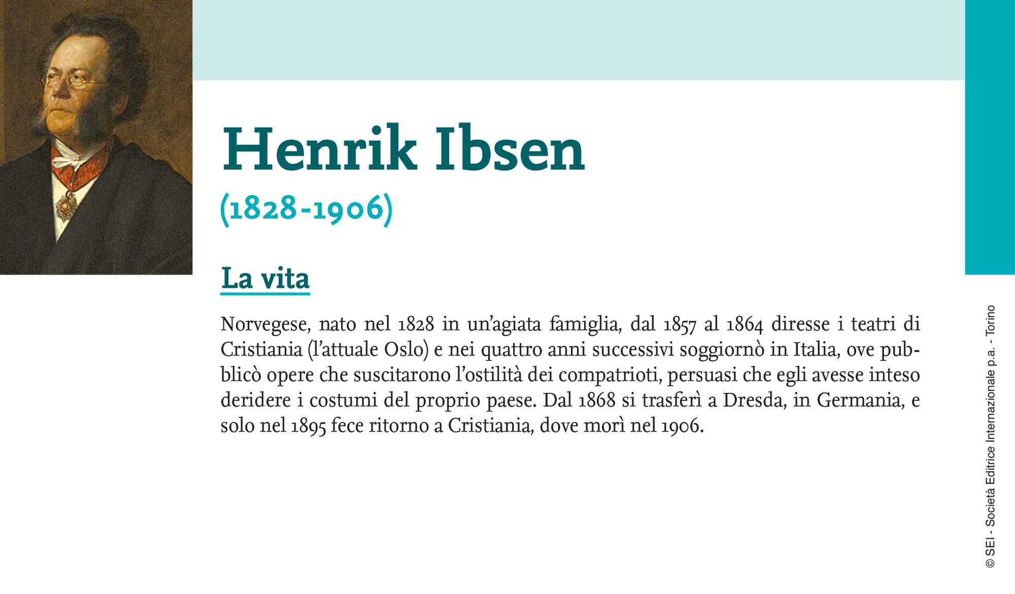 Ibsen esordì con drammi storici in versi, d’ispirazione romana e libertaria, come il Catilina del 1850. A Roma compose Brand (1866) e Peer Gynt (1867): il primo è una denuncia del rigorismo morale, il secondo una favola che esalta la gioia di vivere. Nel 1879 fece scalpore il suo Casa di bambola, testo che si colloca agli albori del femminismo per l’esplicita rivendicazione dell’autonomia della donna. Le opere successive insistono sul tema del condizionamento sociale e della lotta contro il conformismo, allontanandosi sempre più dal Naturalismo per le atmosfere velate di mistero e di allusioni simboliche. Si distinguono, per le prospettive di riscatto che sembrano aprire, La donna del mare, ove si intravvede un’idea non convenzionale della coppia e della famiglia, e Il piccolo Eyolf, in cui con spirito umanitario due genitori reagiscono alla perdita del figlioletto sostituendo alla disperazione la dedizione all’assistenza dei suoi coetanei.
