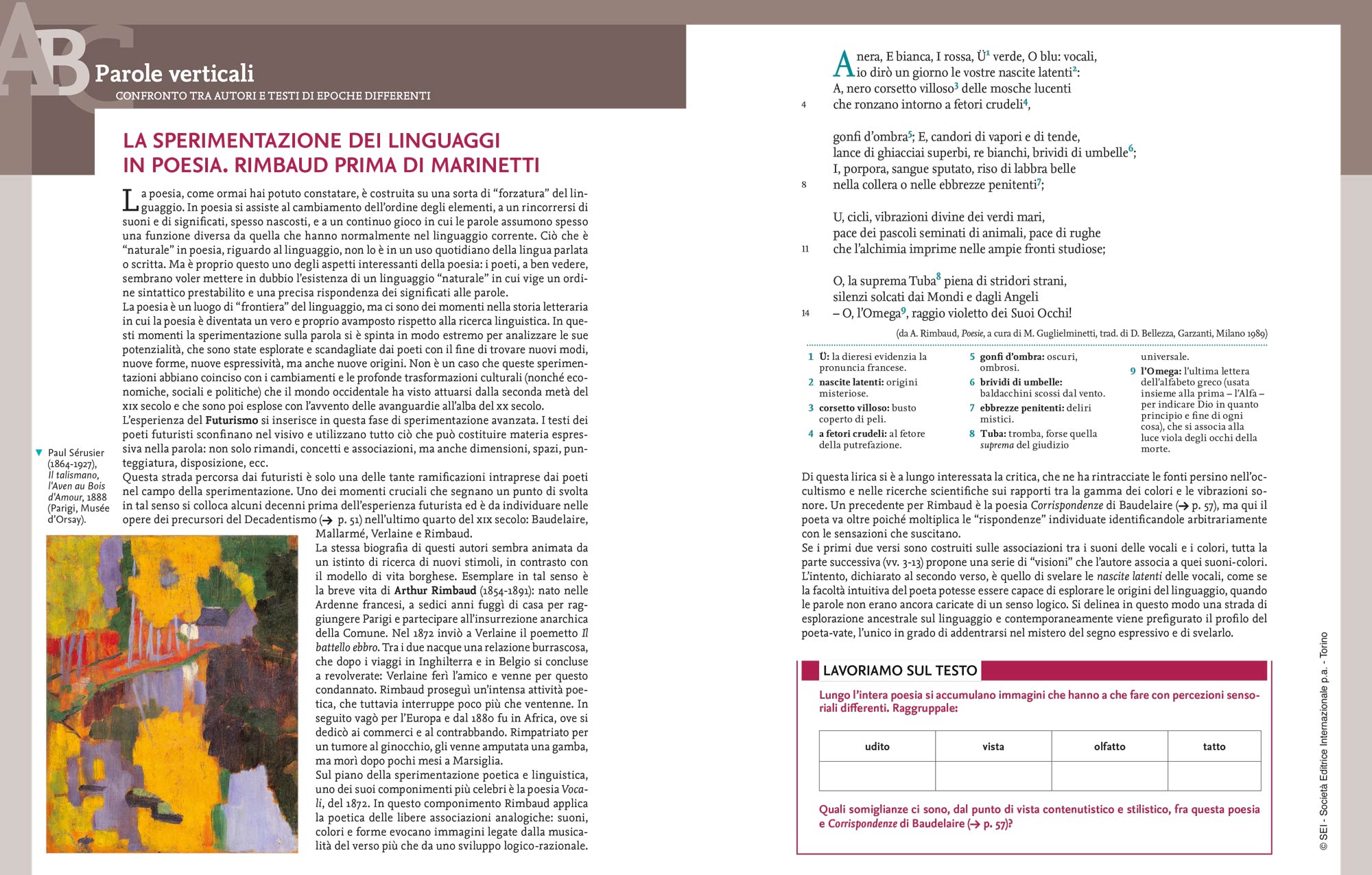 Del poeta-veggente (prodotto da «un lungo, immenso e ragionato sregolamento di tutti i sensi» e intento a sperimentare ed esaurire «tutte le forme di amore, di sofferenza, di follia») parla nella sua raccolta di versi Illuminazioni , che non a caso intitola così. Per lui, come per Baudelaire, si tratta di procedere “oltre” su una strada che solo la poesia e l’arte sanno percorrere.