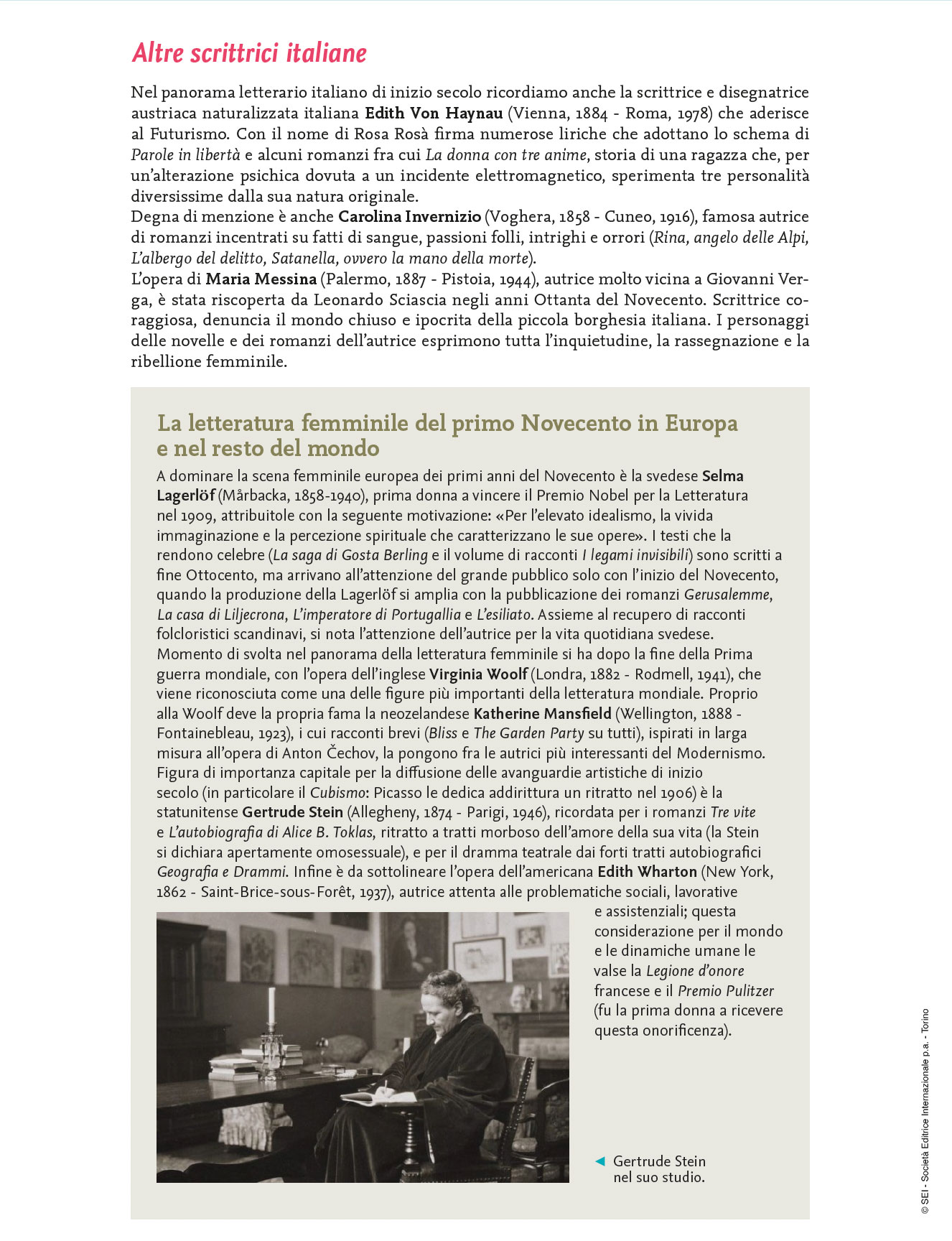 Nel 1906 Sibilla Aleramo (pseudonimo di Rina Faccio, 1876-1960) pubblica un libro destinato a fare scalpore (e anche scandalo), Una donna, che sviluppa in forma romanzesca una drammatica vicenda autobiografica, che culmina nella sua decisione di abbandonare il marito e il figlio per rendersi indipendente. L’opera comparve nel 1906 e la sua fortuna fu immediata sia nella penisola sia nei Paesi in cui venne tradotta: come osservò Emilio Cecchi, «con l’Aleramo non si trattava più di un’autrice, d’una artista soltanto: si trattava anche d’una rivendicatrice della parità femminile, d’una ribelle», capace di fare del proprio scritto un manifesto per l’emancipazione della donna, nell’intento di renderla «signora di se stessa». Nel periodo in cui lavorava al romanzo, Aleramo si impegnava in attività educative – nelle scuole dell’Agro Pontino – con lo scrittore piemontese Giovanni Cena (autore nel 1901 di un coraggioso romanzo sociale, Gli ammonitori); e anche in Una donna richiama l’esigenza e l’urgenza di una nuova educazione e cultura: «Incominciai a pensare se alla donna non vada attribuita una parte non lieve del male sociale. Come può un uomo che abbia avuto una buona madre divenir crudele verso i deboli, sleale verso una donna cui dà il suo amore, tiranno verso i figli? Ma la buona madre non deve essere, come la mia, una semplice creatura di sacrificio: deve essere una donna, una persona umana. E come può diventare una donna, se i parenti la danno, ignara, debole, incompleta, a un uomo che non la riceve come sua eguale; ne usa come d’un oggetto di proprietà; le dà dei figli coi quali l’abbandona sola, mentr’egli compie i suoi doveri sociali, affinché continui a baloccarsi come nell’infanzia?».