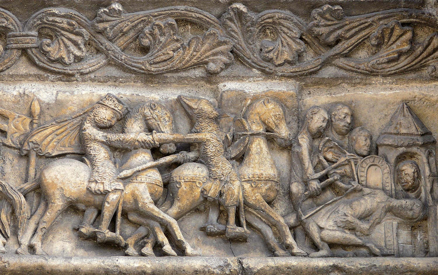 Carlo, ottenuti ostaggi da Marsilio, torna in Francia con l’esercito; Gano propone che Orlando comandi la retroguardia e quest’ultimo, pur sospettando il tradimento, accetta la sfida. A Roncisvalle, in una gola tra i Pirenei, la retroguardia viene attaccata dai musulmani. Orlando potrebbe suonare l’olifante (un corno ricavato da una zanna di elefante) per chiamare l’esercito franco in aiuto, ma il suo orgoglio gli consente di farlo solo quando è ormai troppo tardi e tutta la retroguardia è stata sterminata.
