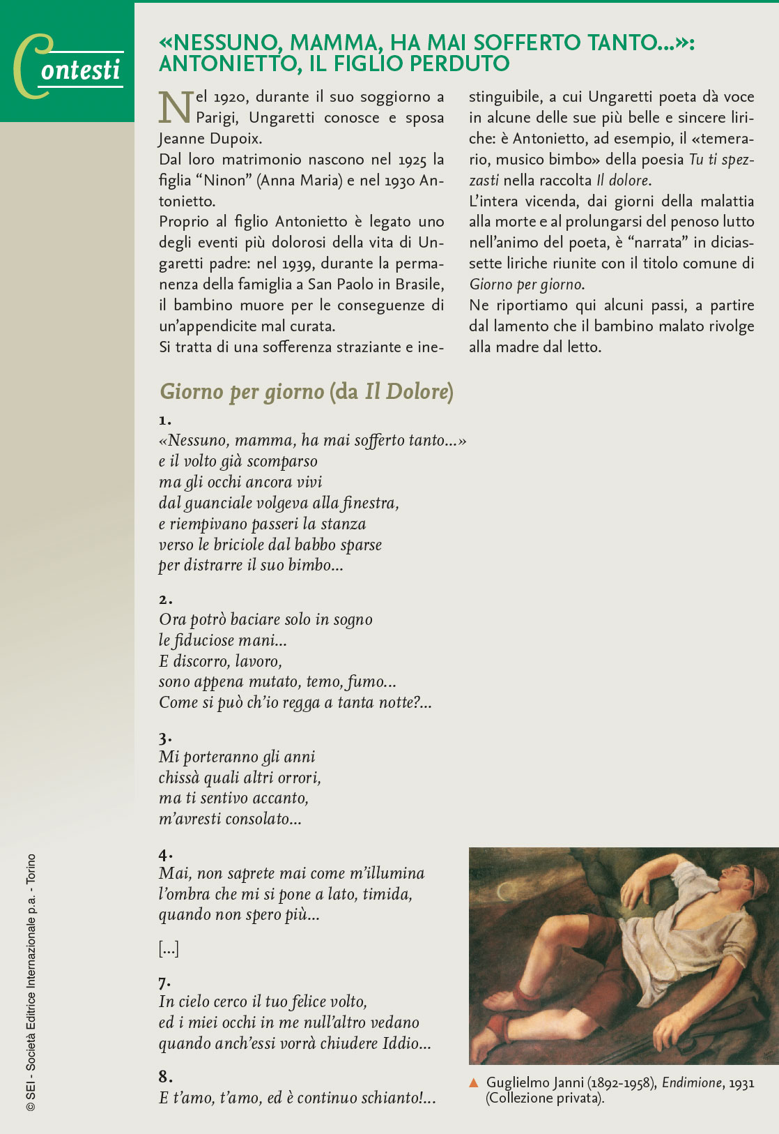 Uscita nel 1947, l’opera comprende le liriche del periodo 1937-1946, incentrate sui dolori privati e pubblici di Ungaretti: le pene e le sofferenze per i lutti personali (la morte del fratello, evocata in Se tu mio fratello e quella, inconsolabile, del figlio Antonietto che ispira la sezioni di frammenti Giorno dopo giorno) si intersecano con l’orrore e l’estenuazione per le violenze quotidiane della Seconda guerra mondiale nella sezione Roma occupata, documento poetico e civile sull’occupazione nazista della città.