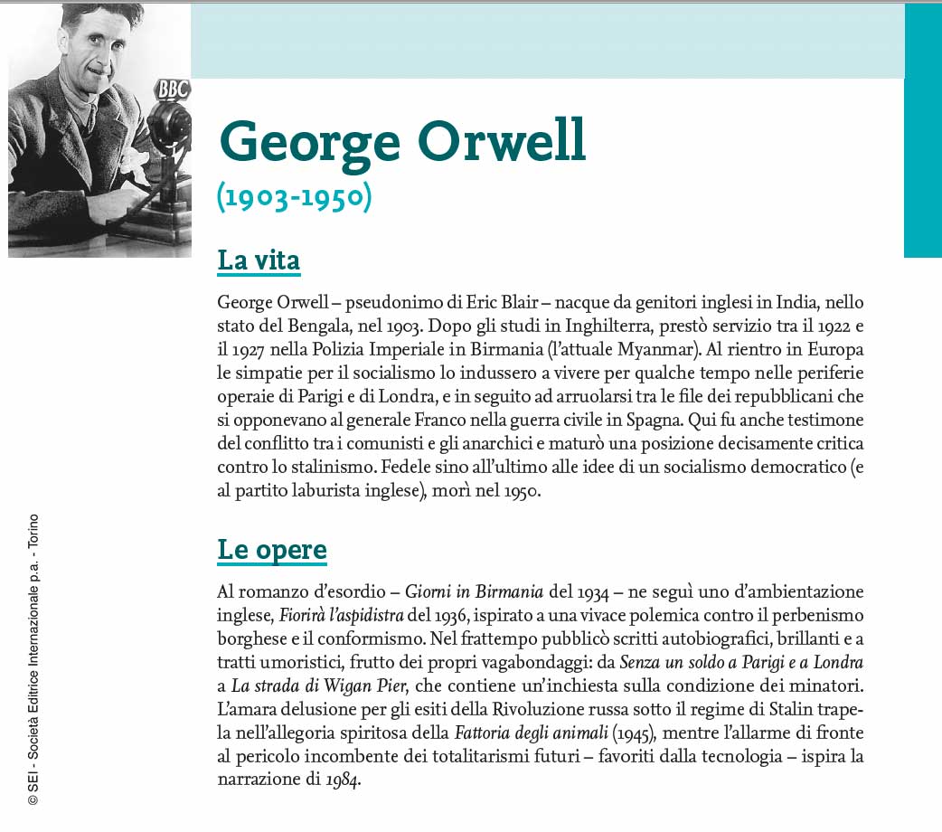 Quando pubblica 1984 nel 1949 lo scrittore inglese George Orwell era già celebre per due libri ispirati dal suo lungo soggiorno in Oriente e dalla partecipazione alla guerra di Spagna (Giorni in Birmania e Omaggio alla Catalogna), ma soprattutto per La fattoria degli animali, una favola satirica in cui aveva alluso alla degenerazione (nella dittatura stalinista) della rivoluzione sovietica, riassunta nel motto: «Tutti gli animali sono uguali, ma alcuni sono più uguali degli altri».