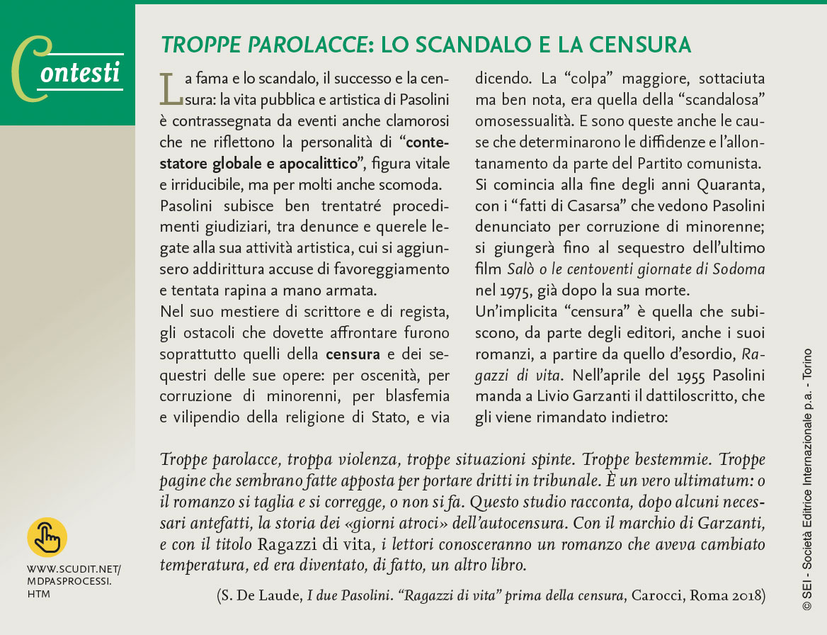 Il romanzo dello scandalo Ragazzi di vita è il primo romanzo del periodo romano pubblicato nel 1955. È ambientato a Roma durante l’occupazione nazista e nell’immediato dopoguerra: protagonisti sono i ragazzi del sottoproletariato della periferia romana, che si guadagnano la vita con espedienti vari, anche illegali, in condizioni di miseria materiale, ma che, nonostante le difficoltà e il degrado sociale, manifestano un’inesauribile energia vitale.