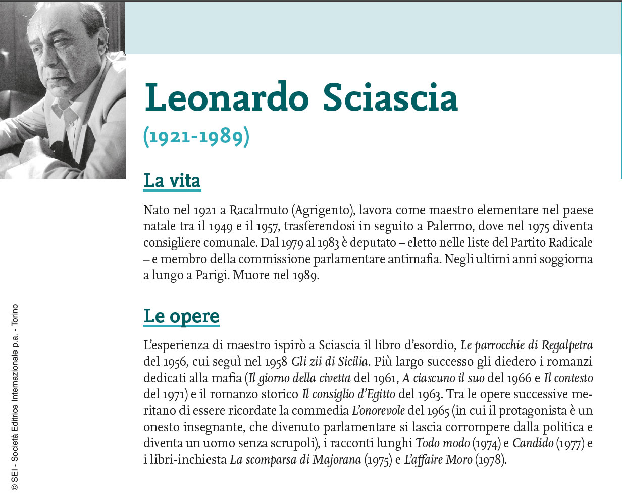 La produzione narrativa di Leonardo Sciascia è caratterizzata da un accentuato impegno civile, proprio di chi considera la scrittura come mezzo di intervento nel sociale. La critica corrosiva di Sciascia scaturisce innanzitutto da un uso analitico e sistematico della razionalità. Nei suoi romanzi la ragione diventa un’arma lucida e fredda, che gli consente di penetrare in un mondo avvolto in minacciose oscurità: prima fra tutte la mafia, cui dedica alcune tra le sue opere più importanti, da Il giorno della civetta a Il contesto e A ciascuno il suo.