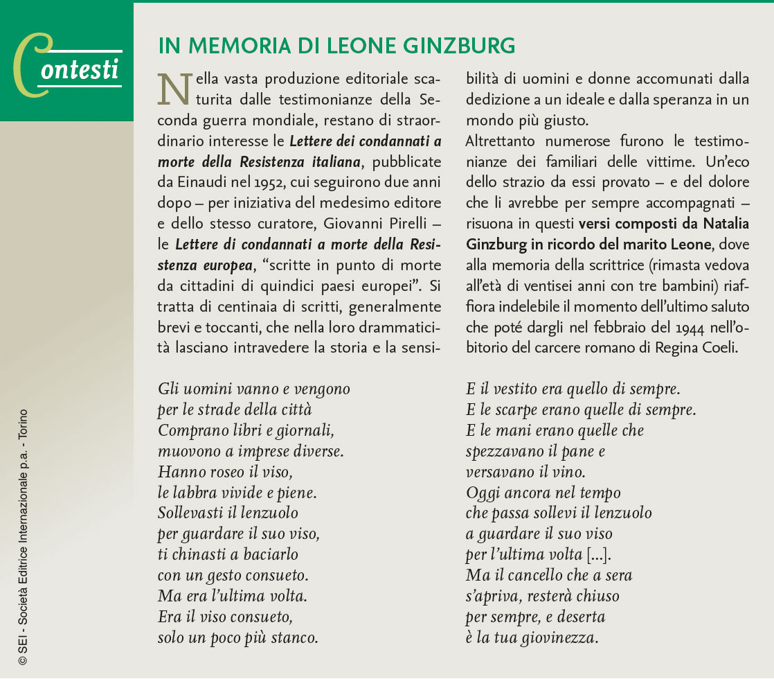 Natalia Levi (1916-1991), nata a Palermo e cresciuta a Torino nell’ambiente culturale della casa editrice Einaudi, sposa nel 1938 un intellettuale antifascista di origine russa, Leone Ginzburg, che sei anni dopo morirà nelle carceri fasciste, dopo aver trascorso con lei un lungo periodo di confino in Abruzzo.