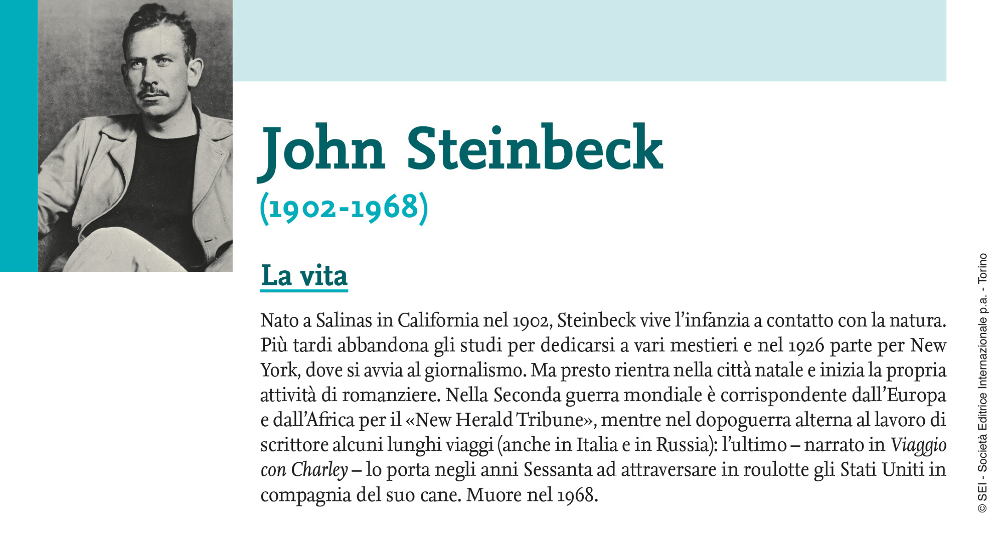 Durante il secondo conflitto mondiale Steinbeck fu – come Hemingway – corrispondente di guerra su vari fronti – e pubblicò La luna è tramontata (1942), romanzo sulla resistenza all’occupazione nazista in Norvegia, cui seguirono ancora La valle dell’Eden (1952) – lunga saga di due famiglie, in cui la tematica sociale si intreccia con la meditazione sul problema del male – e L’inverno del nostro scontento (1961), che è un atto d’accusa contro la corruzione dell’America contemporanea.