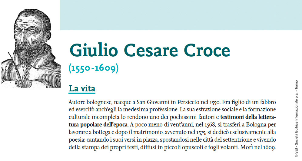 Un caso particolare – uno dei pochissimi testi di autentica estrazione popolare della nostra letteratura – è rappresentato da Le sottilissime astuzie di Bertoldo (1606) e Le piacevoli e ridicolose semplicità di Bertoldino (1608), del fabbro e cantastorie bolognese Giulio Cesare Croce. Di ambientazione medievale, i racconti sono incentrati sul personaggio di Bertoldo, un contadino semplice e astuto, e sulle sue avventure. Capitato alla corte del re longobardo Alboino, ne suscita grande divertimento e interesse per la vivacità, la prontezza e l’arguzia del suo ragionare.