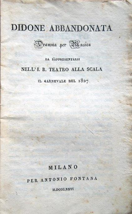 Scrisse ventisei melodrammi, tra i quali Didone abbandonata, che si ispira alla drammatica vicenda, narrata nell’Eneide di Virgilio, della regina Didone e del suo suicidio a causa del suo amore disperato per Enea.